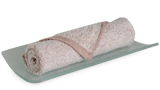 おしぼりの匁とは大きさではなく、1ダースにおける重さのことです(1匁=3.75g)。70匁は1枚約21g、90匁は1枚約28g、100匁は1枚約31g、120匁は1枚約38g、140匁は1枚約44gになります。